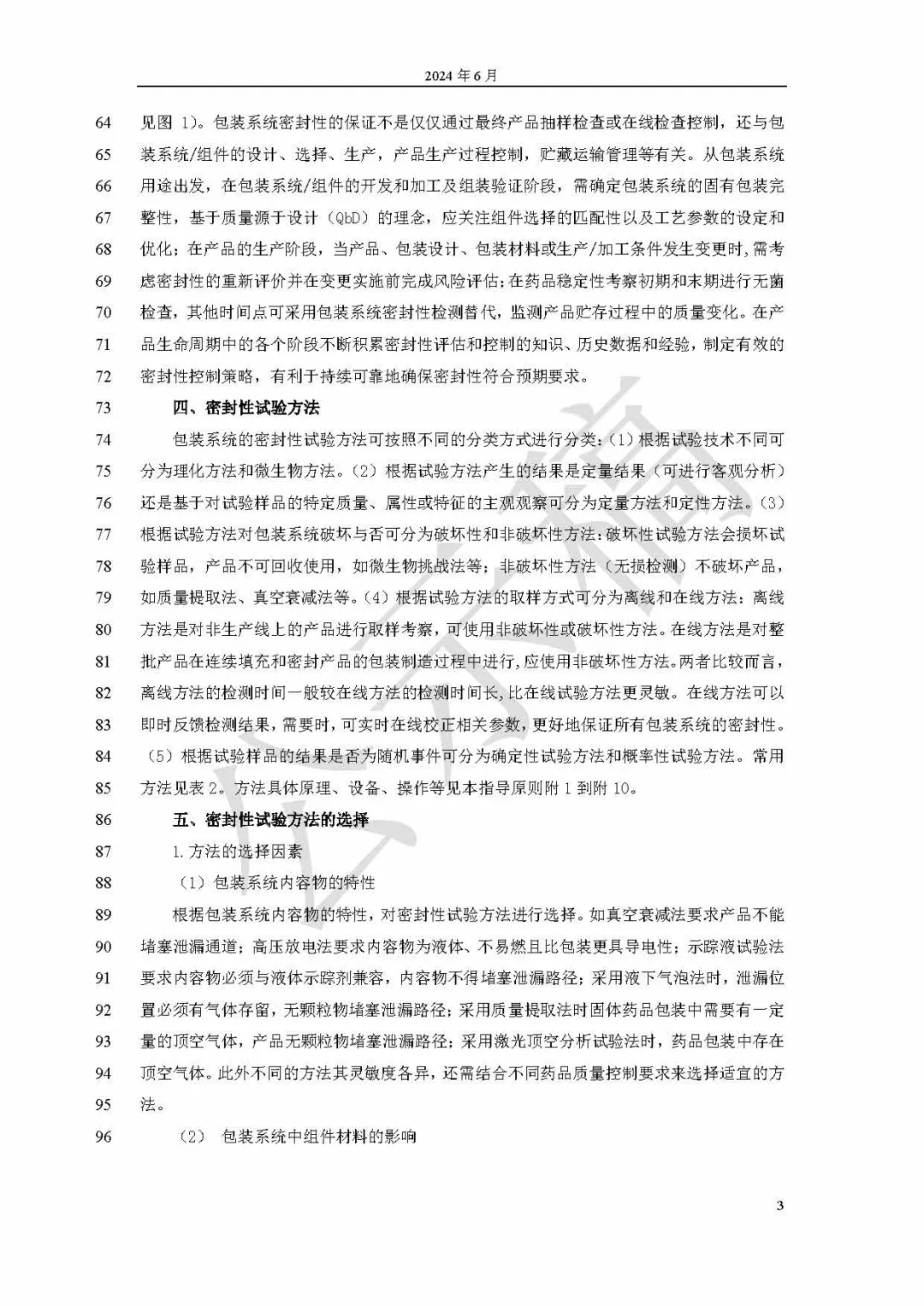 國(guó)家藥典委員會(huì)于2024年6月21日公示了《9628無(wú)菌藥品包裝系統(tǒng)密封性指導(dǎo)原則公示稿(第二次)》,公示期為30天。該指導(dǎo)原則重點(diǎn)闡述無(wú)菌藥品無(wú)孔包裝系統(tǒng)的泄漏方式、泄漏風(fēng)險(xiǎn)、密封性試驗(yàn)方法選擇、方法驗(yàn)證和結(jié)果評(píng)價(jià)等相關(guān)要求,為無(wú)菌藥品包裝系統(tǒng)密封性研究和評(píng)價(jià)提供指導(dǎo)。