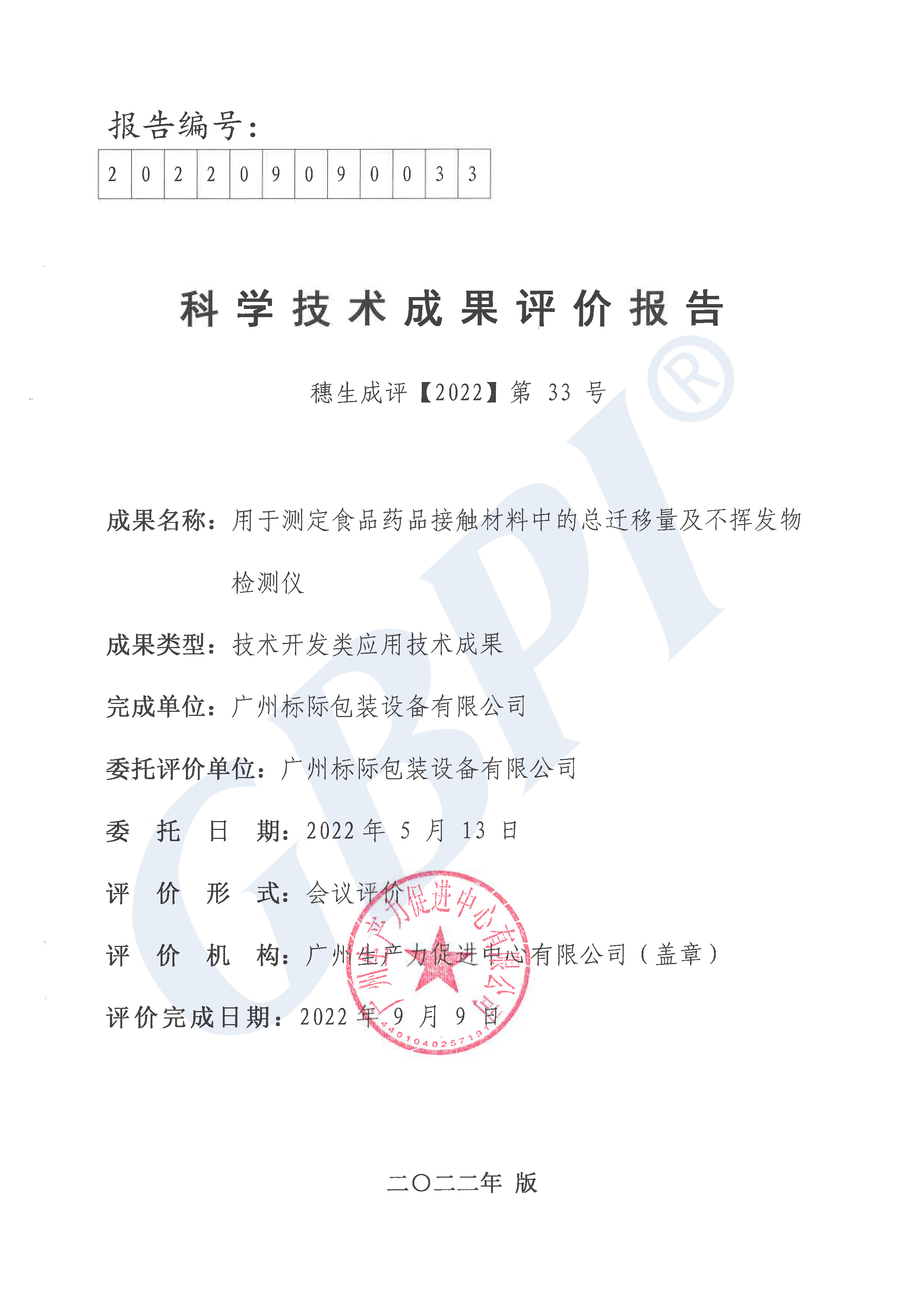 發(fā)布時(shí)間:2022-09-302022年9月9日,在廣州召開了由標(biāo)際完成的“用于測(cè)定食品藥品接觸材料中的總遷移量及不揮發(fā)物檢測(cè)儀”科技成果評(píng)價(jià)會(huì)。