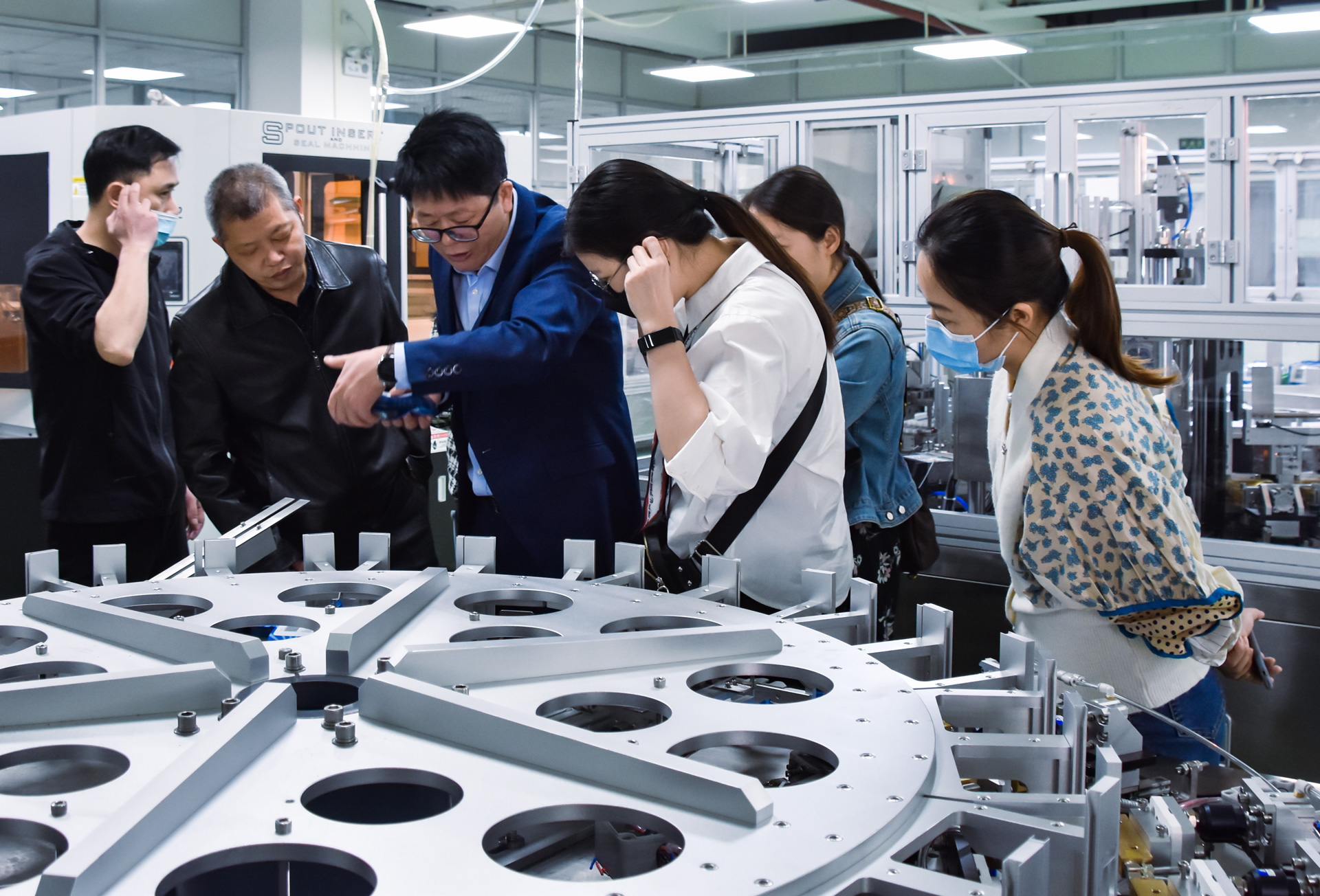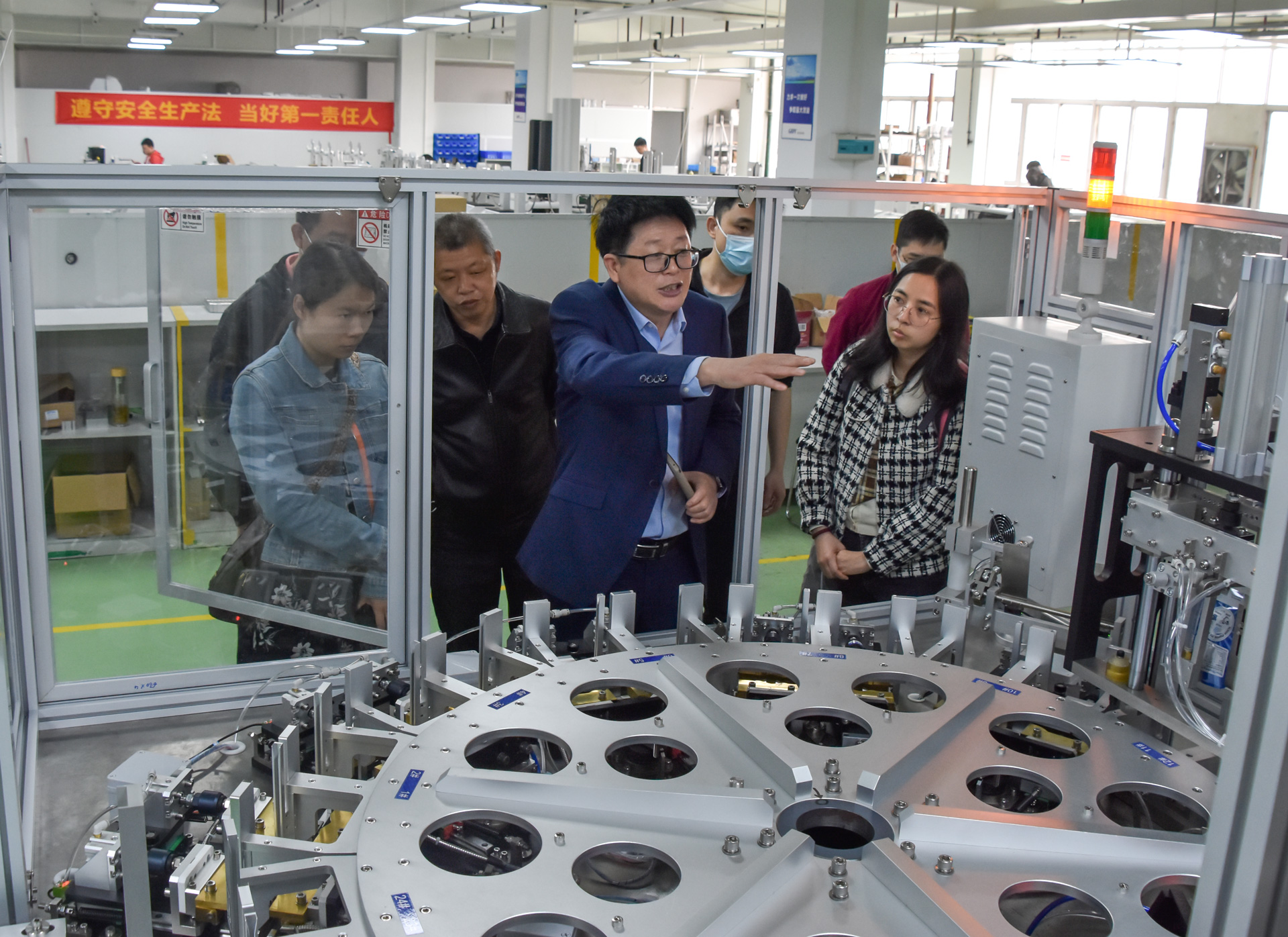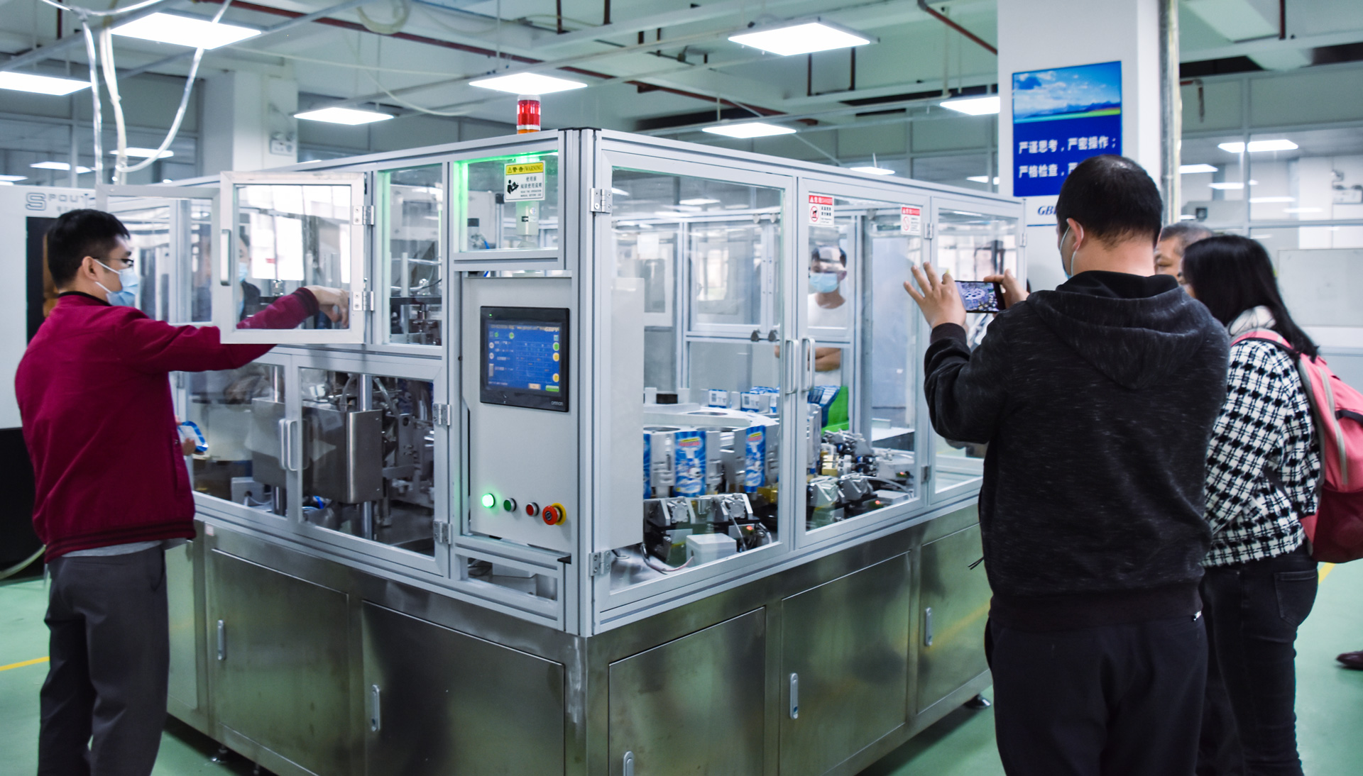 ▲ 考察全自動(dòng)轉(zhuǎn)盤(pán)式封管機(jī)