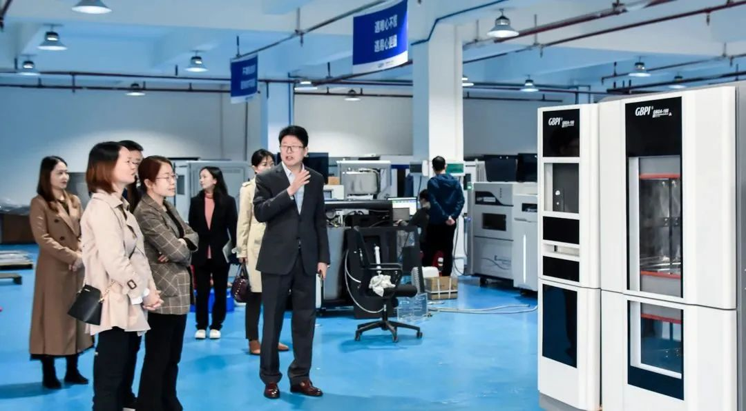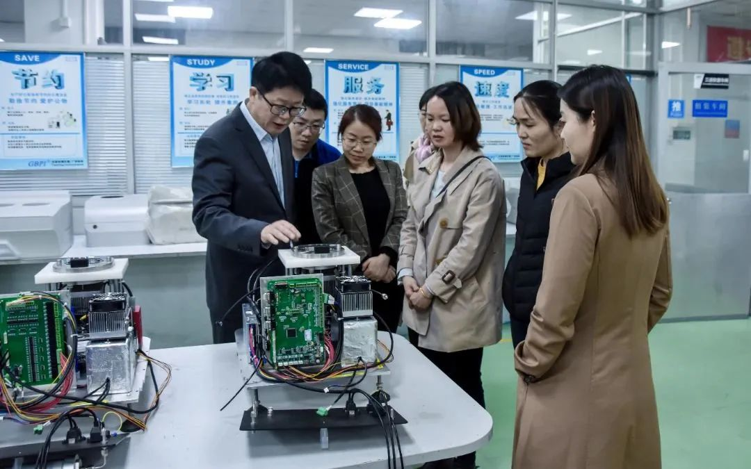 廣州標際總經理周學惠帶領仲主任、趙教授領導一行參觀了阻隔性能檢測儀器實驗室、基礎儀器生產車間、數字化實驗室、應用場景綜合展廳等場地。