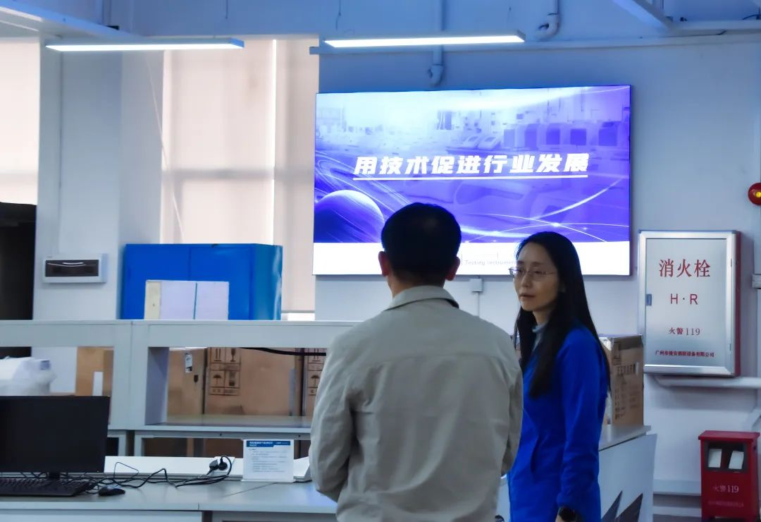 廣州標際董事長周學成帶領肖教授參觀了阻隔性能檢測儀器實驗室、基礎儀器生產車間、數字化實驗室、應用場景綜合展廳等場地。在現場,董事長周學成對標際的各系列儀器進行了講解,一件件儀器中,凝聚了科技的技術與創新,展現了先進的包裝材料檢測技術。
