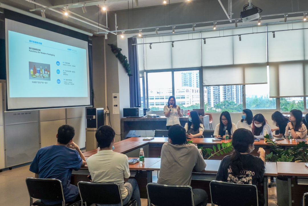座談交流會環節,黃經理向廣州城市職業學院師生們詳細介紹了GBPI標際的發展歷程、產品技術優勢、企業文化、產品應用等情況,并重點介紹了標際在包裝檢測儀器領域的技術應用和豐碩成果。