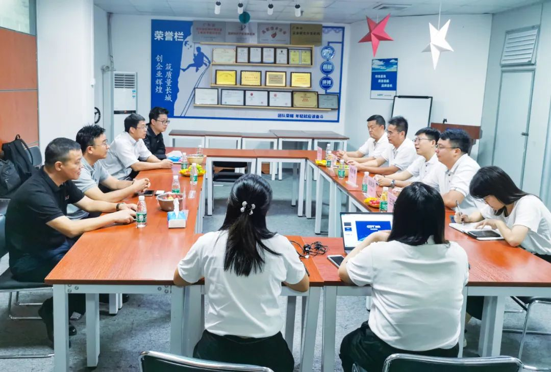 雙方在會議室展開座談會,廣州標際對賽默飛魏總一行的來訪表示熱烈歡迎,并通過企業宣傳片和PPT展示等方式全面展示了公司以及行業的發展情況。